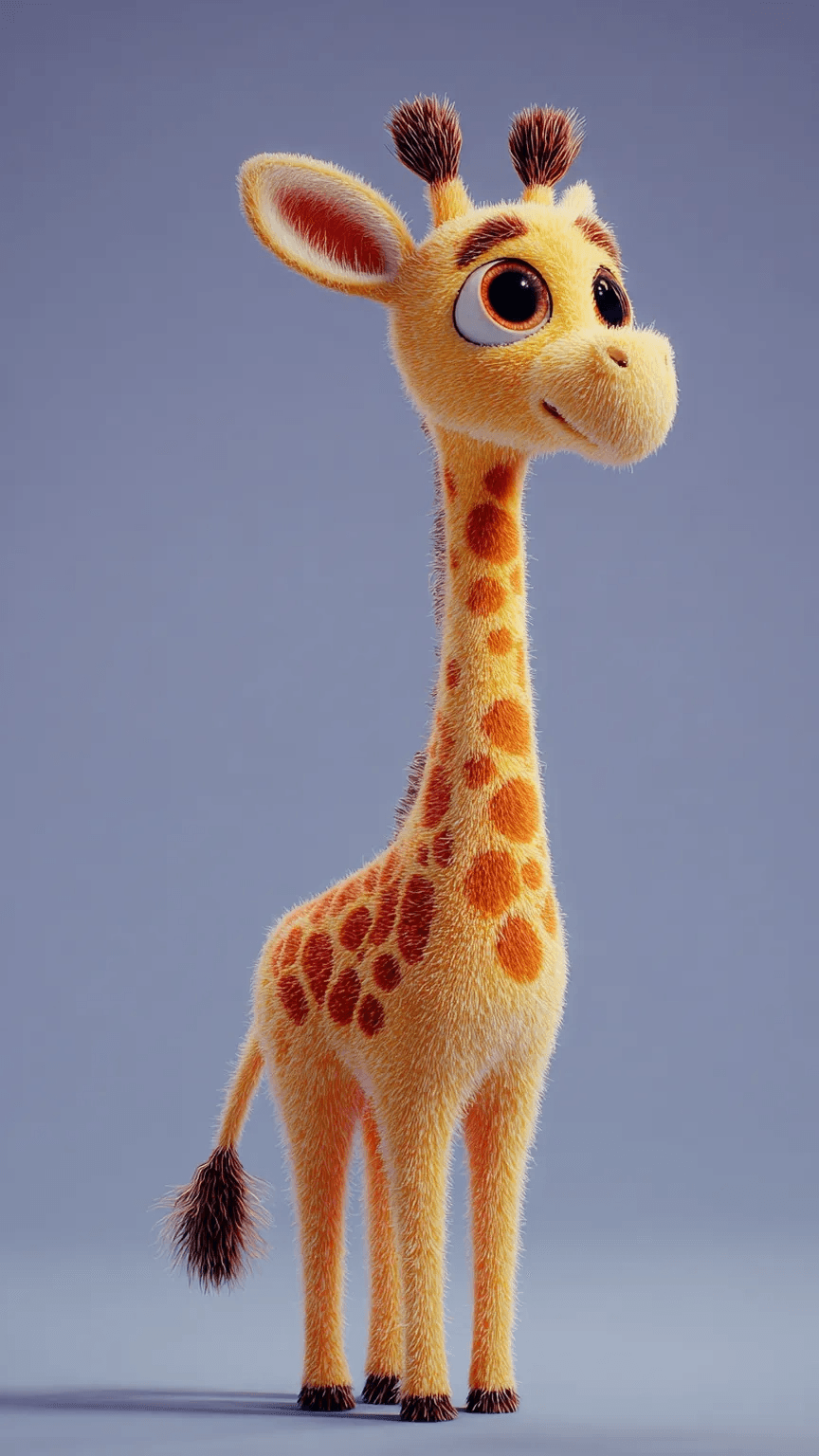 adorable stylized giraffe character with a small rounded body and a long thin ne...