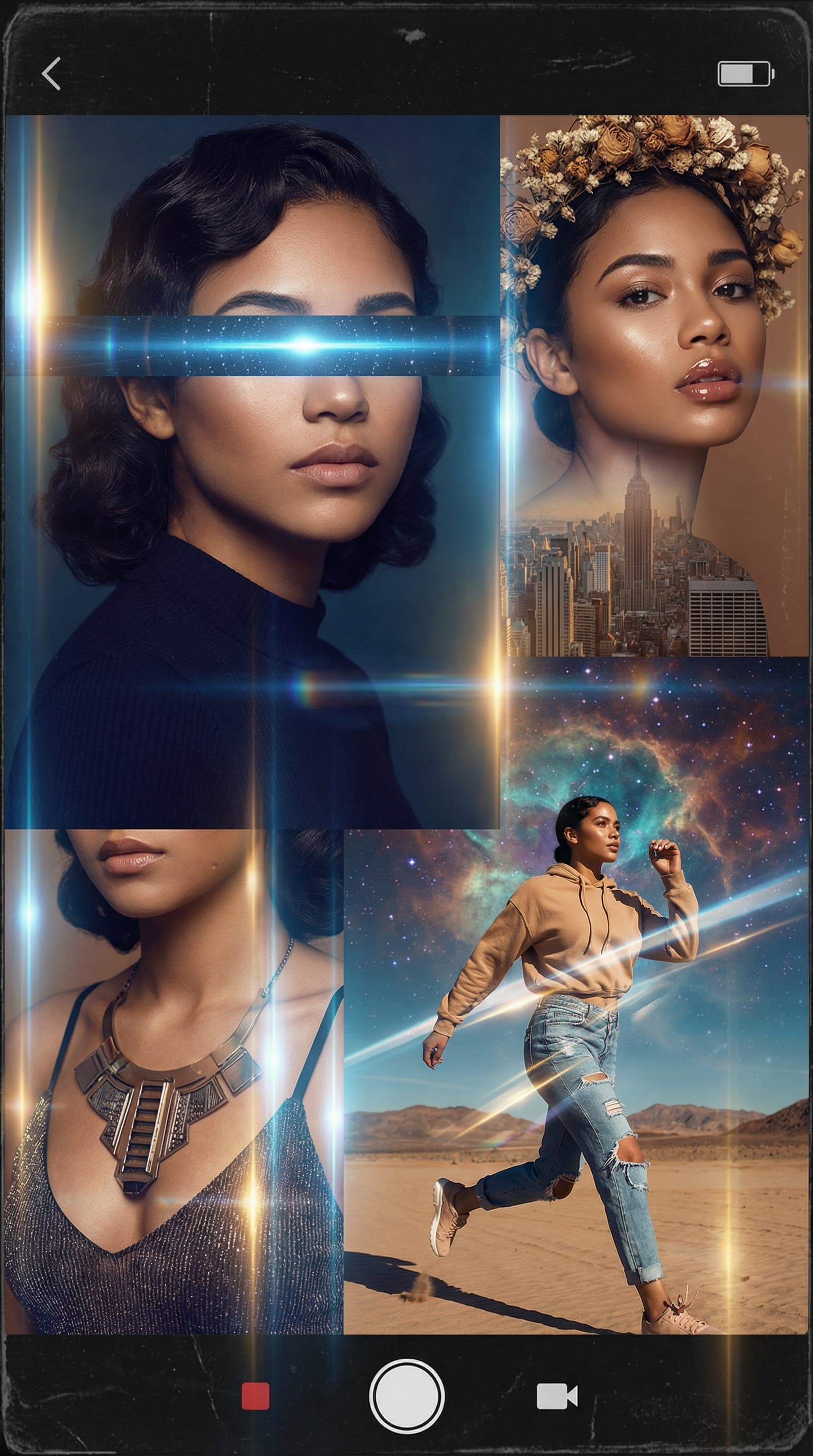 This artwork presents a composite portrait, evoking a sense of fragmented identity and aspiration. Through layered im...