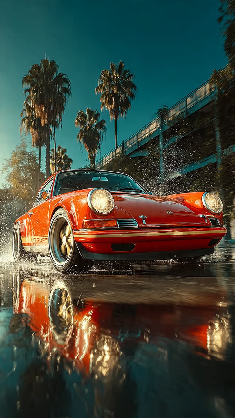 Cinematic Still An action shot of a Porsche 911 Singer in motion, capturing the ...