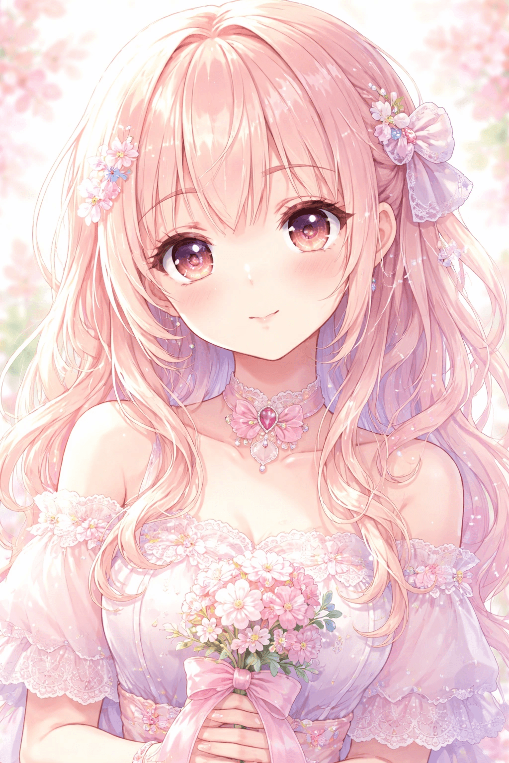 Anime-style character portrait, soft pastel colors, expressive eyes.