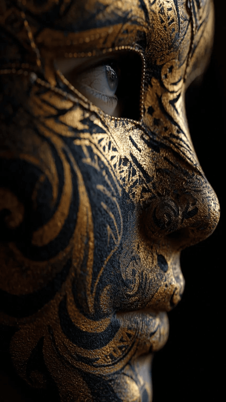 Double exposure of a person's face, half in shadow, blended with the intricate p...