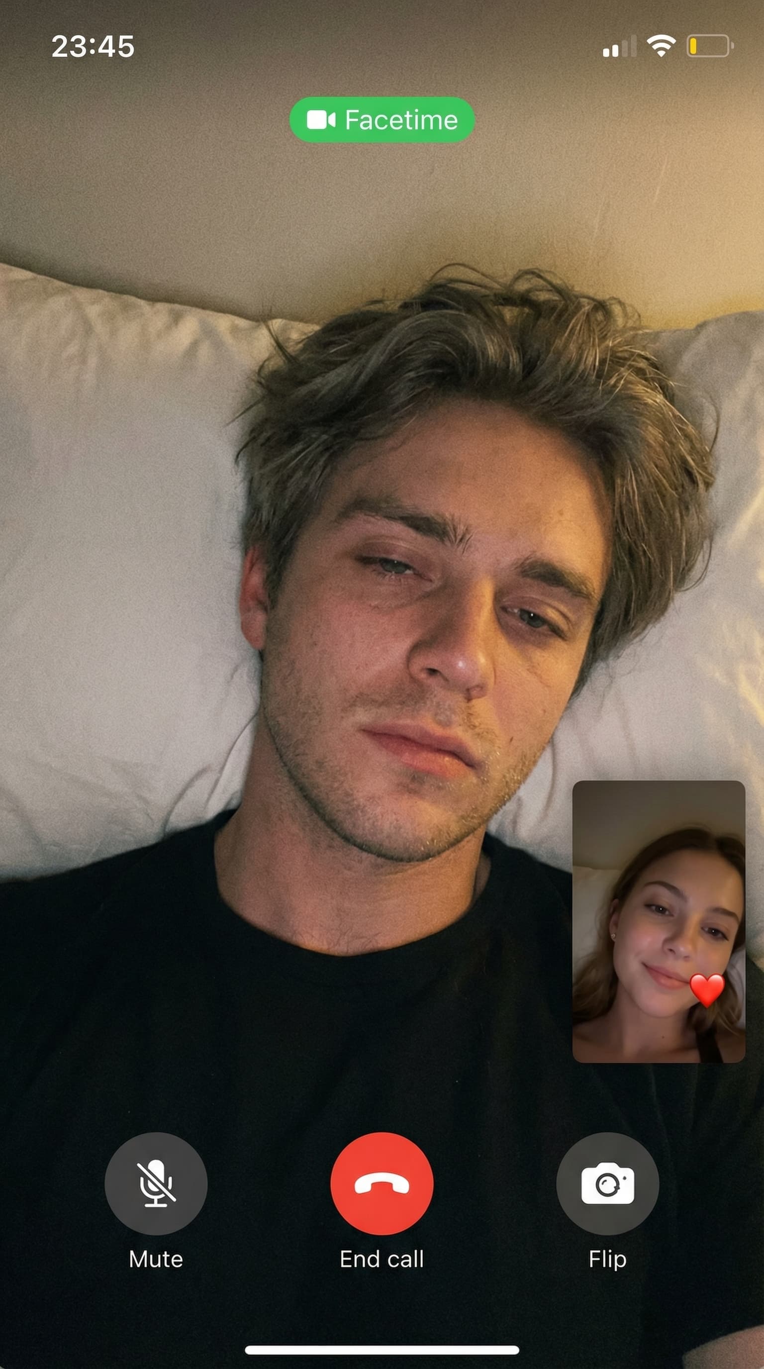 This work depicts a tender moment shared through a late-night video call. The soft lighting and close-up perspective ...