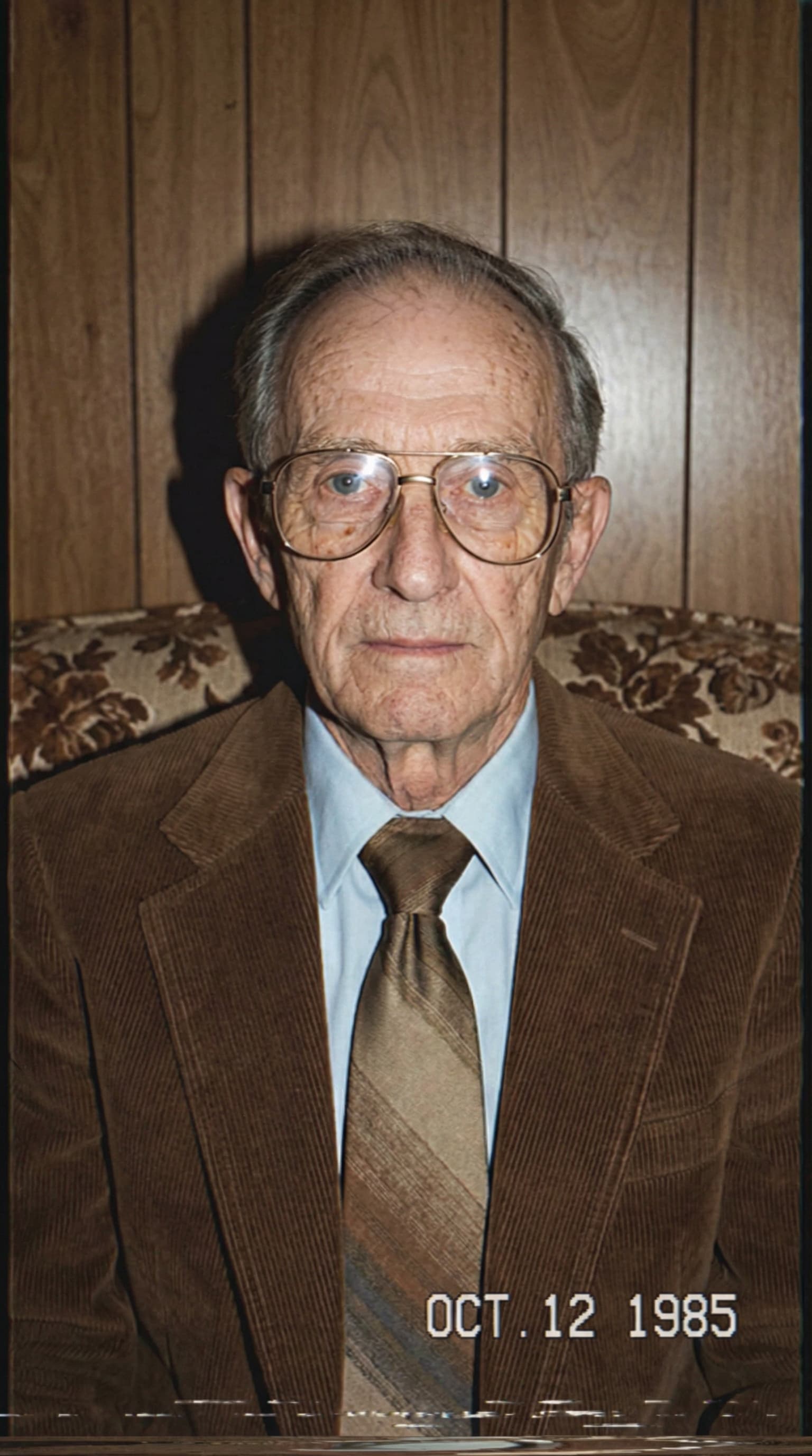 This portrait captures a man in a corduroy suit, taken in a dated, slightly worn style. The image, dated October 12, ...