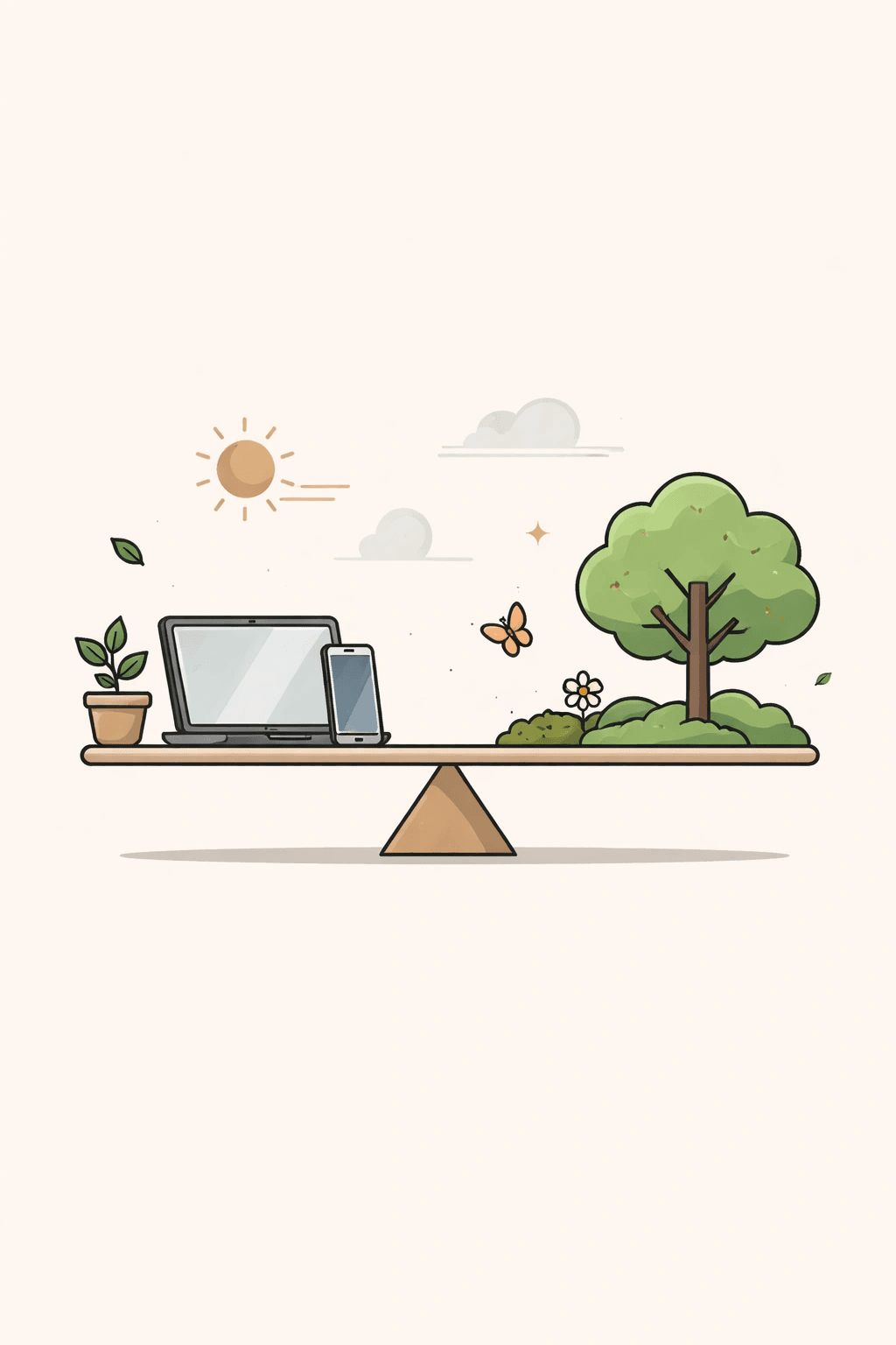 Minimalist illustration of balance between technology and nature.