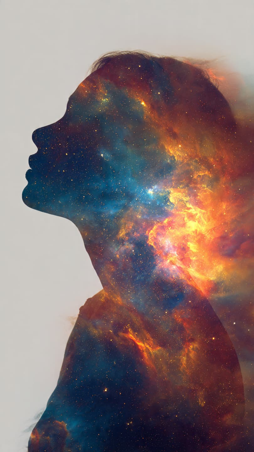 Surreal digital art of a human silhouette filled with galaxies and stars.