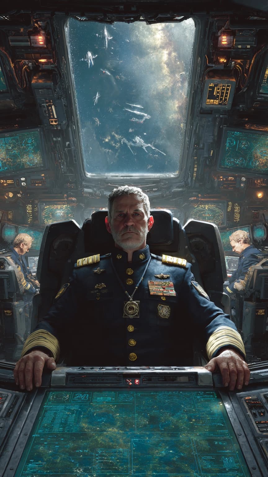 A figure in a brown tweed suit and distinctive striped scarf beams against a backdrop of deep space. Leaning against ...