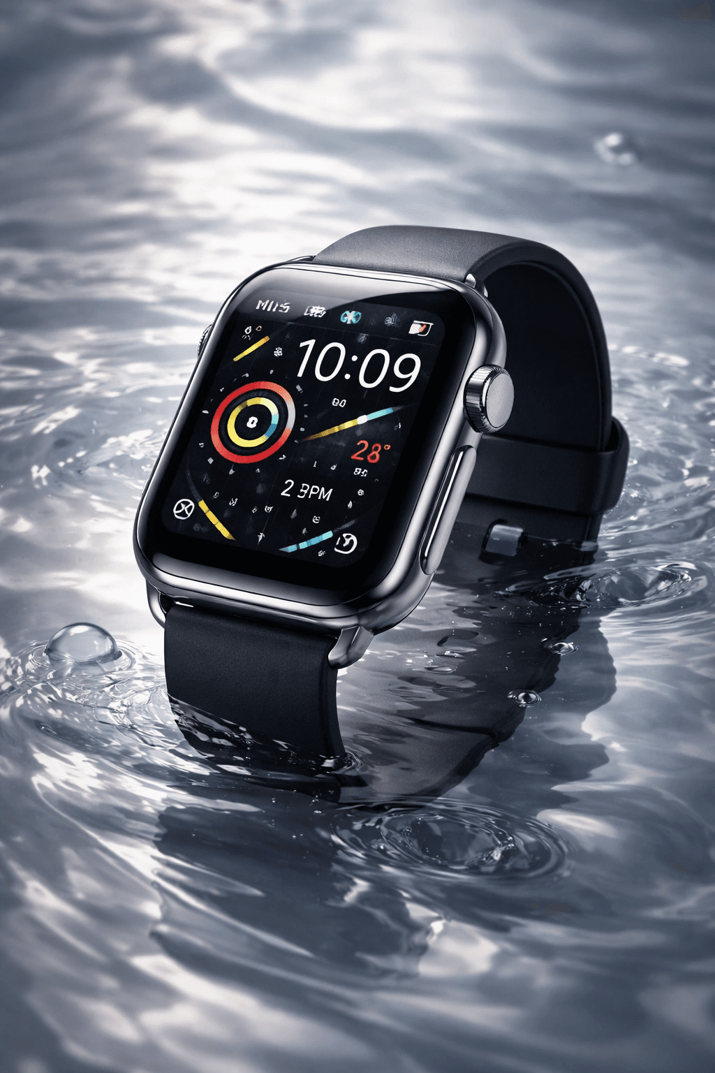 A monumental advertisement dominates a snowy Times Square, featuring a woman in futuristic ski goggles and a metallic...