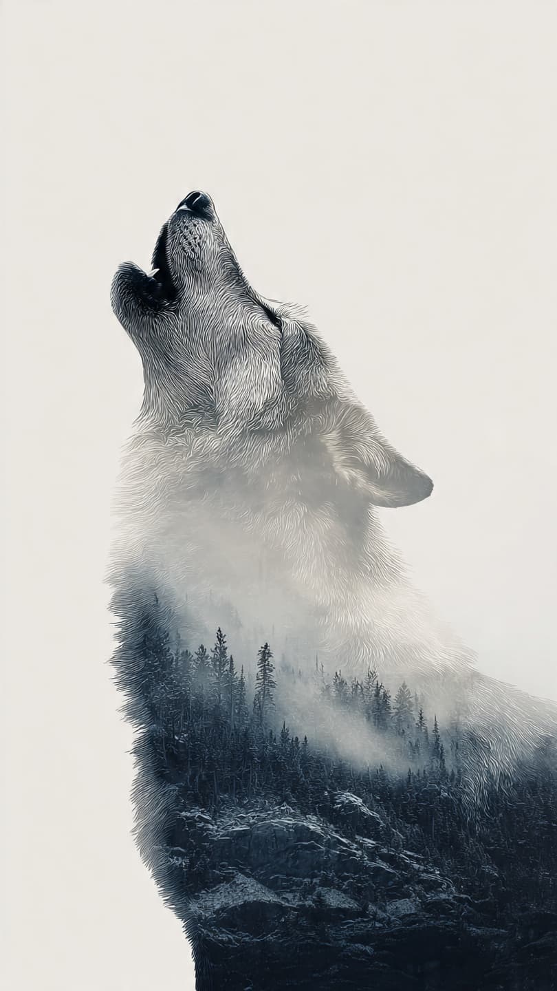 Double exposure of a mountain landscape blended with the silhouette of a lone wo...