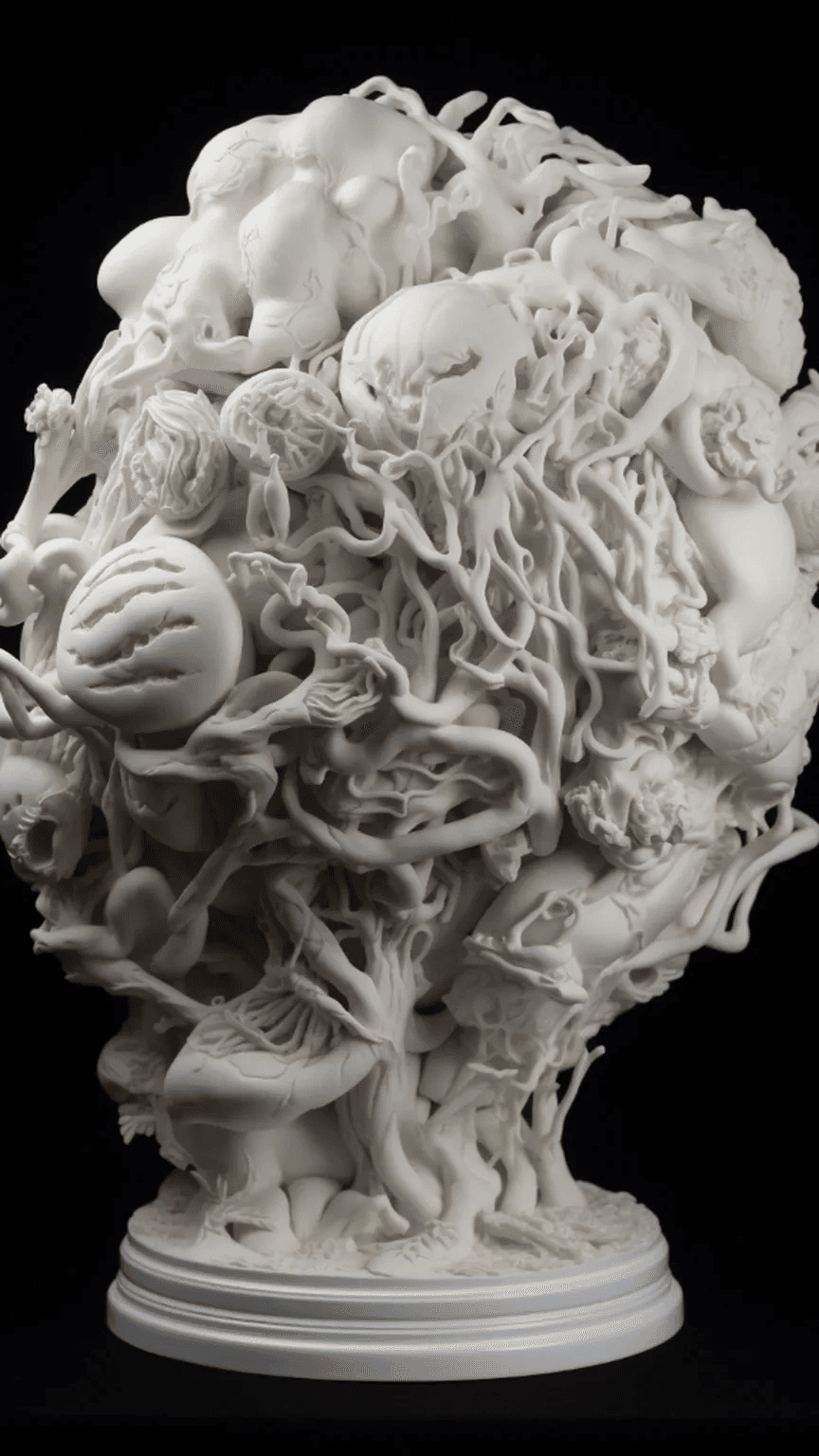 Multidimensional Porcelain sculpture of a 3D brain, museum art piece --v 5