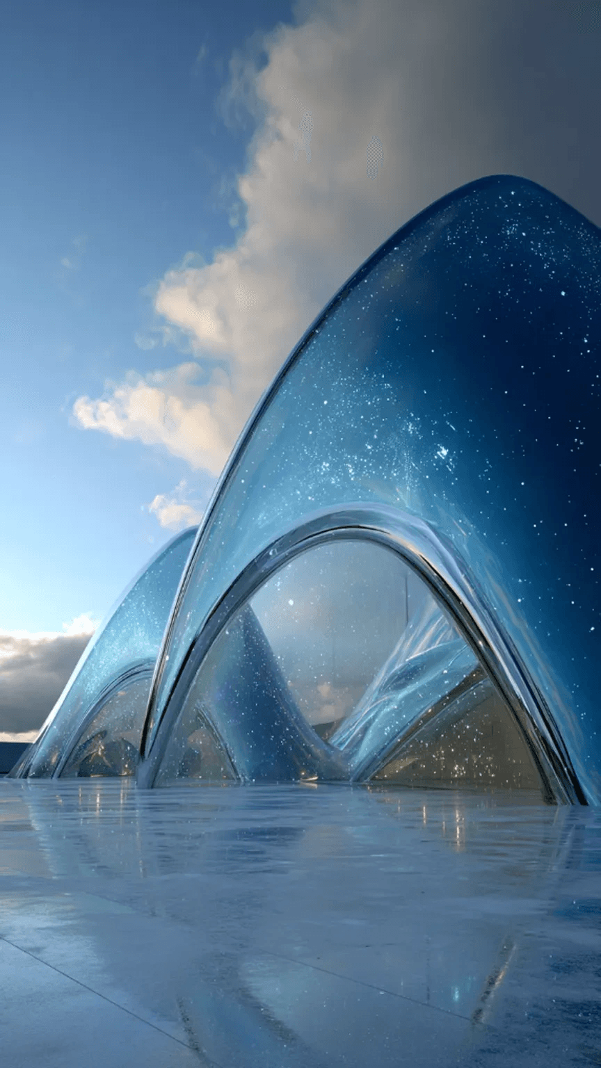 A crystal-skinned woman glowing with soft golden light. Her hair flows like liqu...