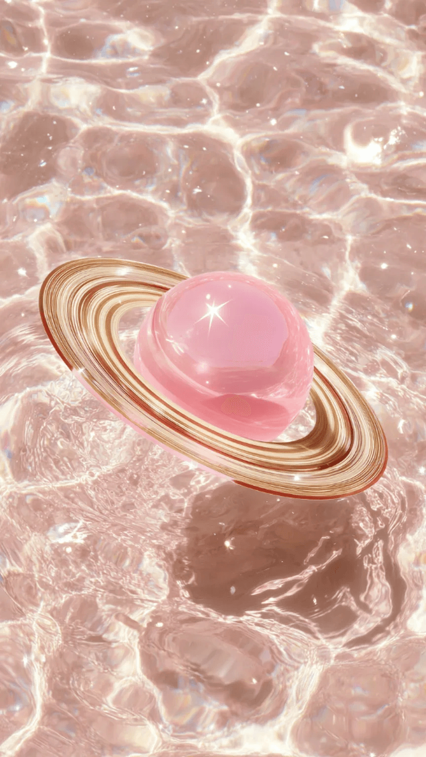 A pink saturn encased in water, in the style of cute and dreamy, celestialpunk, ...