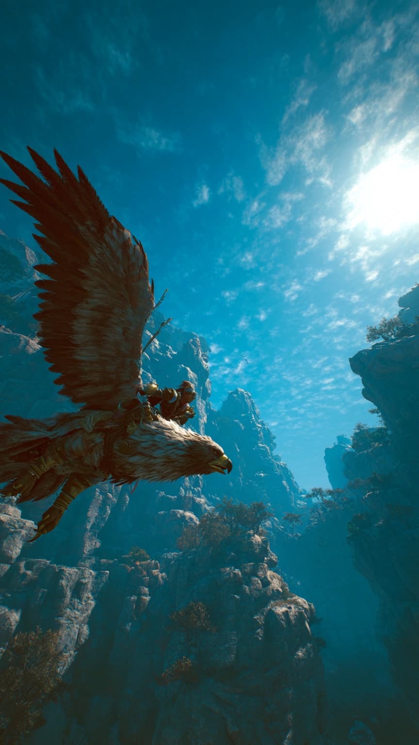 A photo of a serene Cloud-Top Aerie, featuring a Keeper gently tending to a herd...