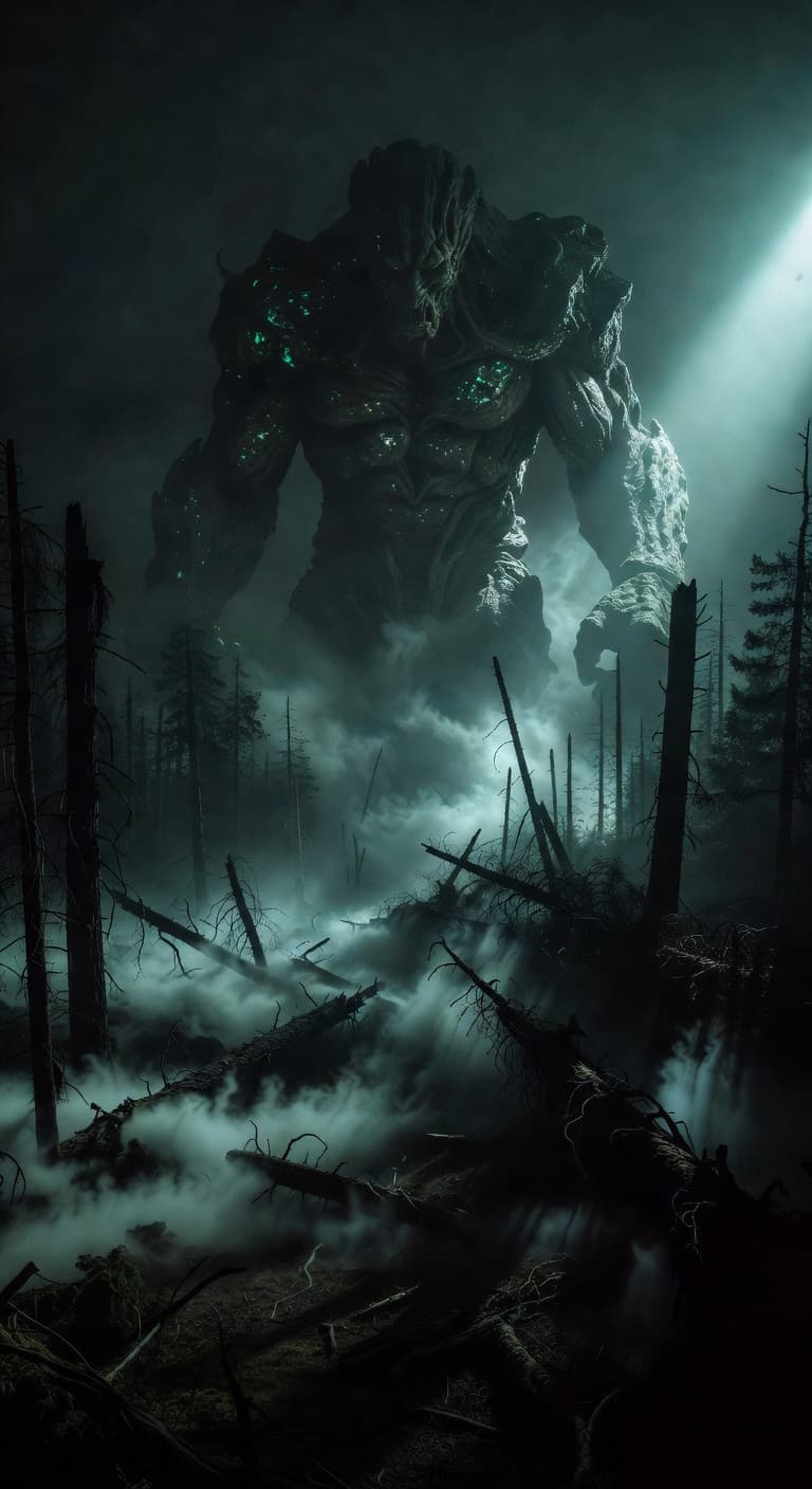 A figure in a black sequined gown stands on a rocky shore, the stormy ocean stretching into a mist-filled horizon. Th...