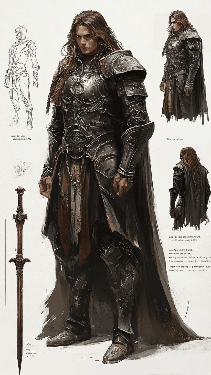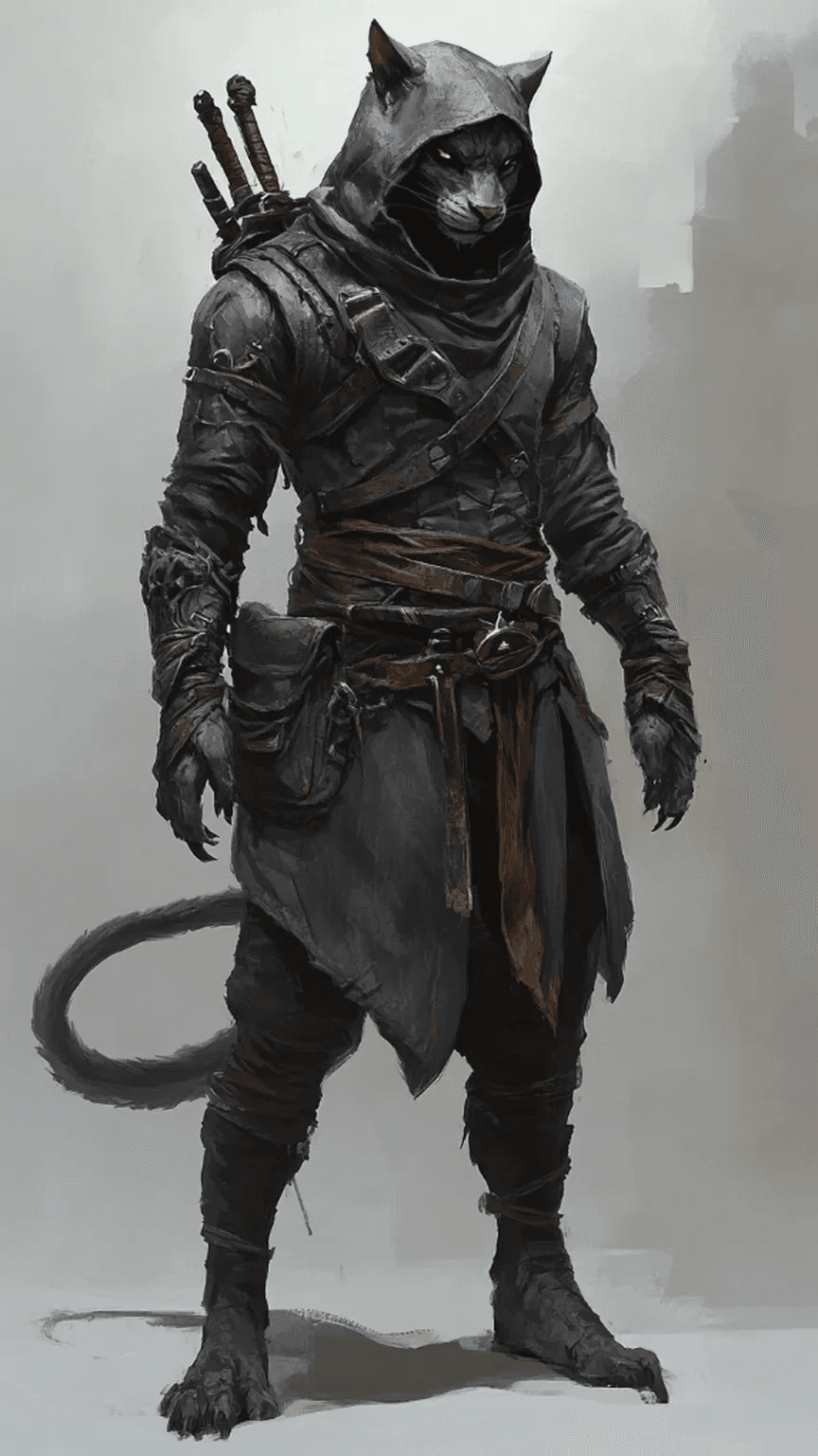 A fierce dragonborn rogue character sheet with a lean, agile physique. The front...