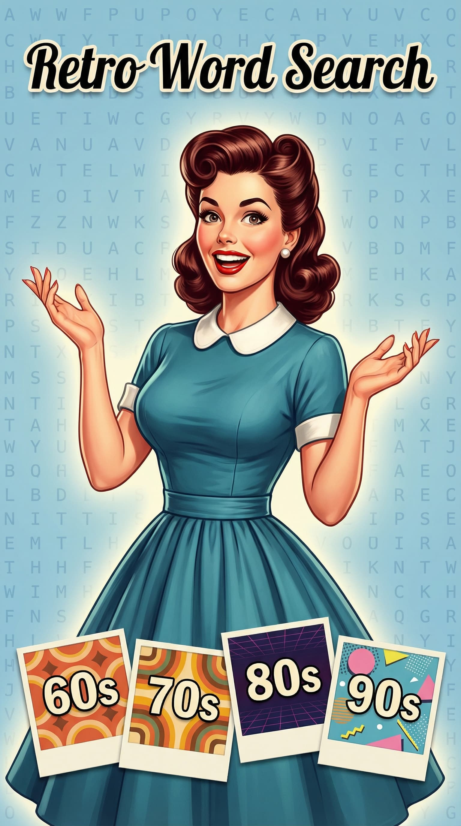This illustration presents a character study of a striking woman in a vintage, mid-century style, rendered with brigh...