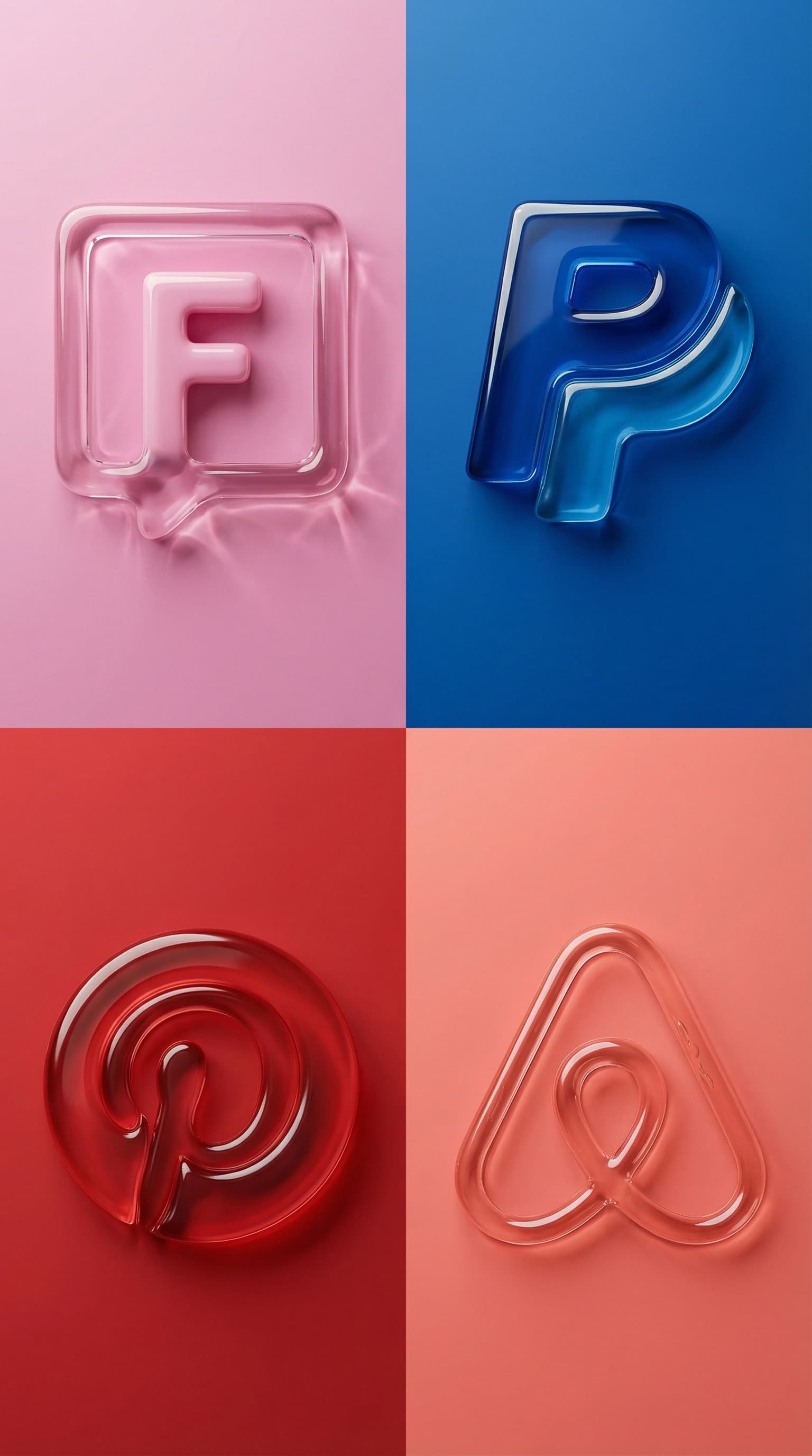 This artwork features glossy, stylized logos of popular social media and payment platforms. Rendered in a minimalist ...