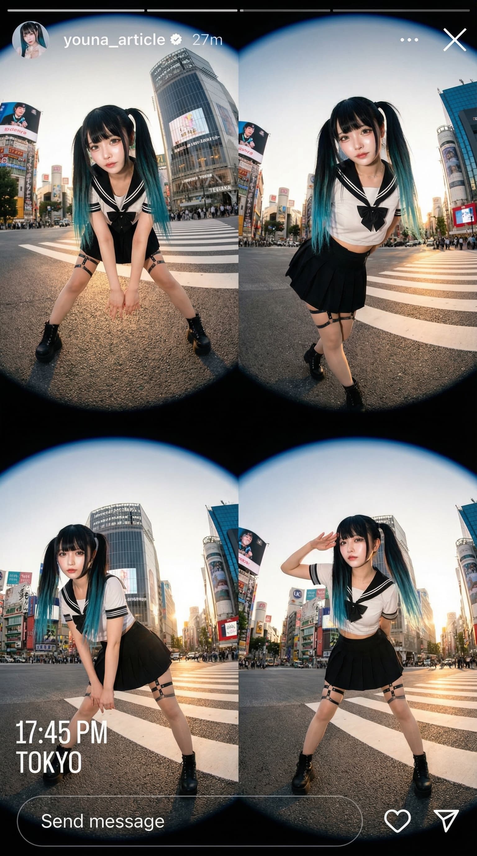 This digitally rendered work depicts a young woman in a Japanese school uniform against the vibrant backdrop of Tokyo...