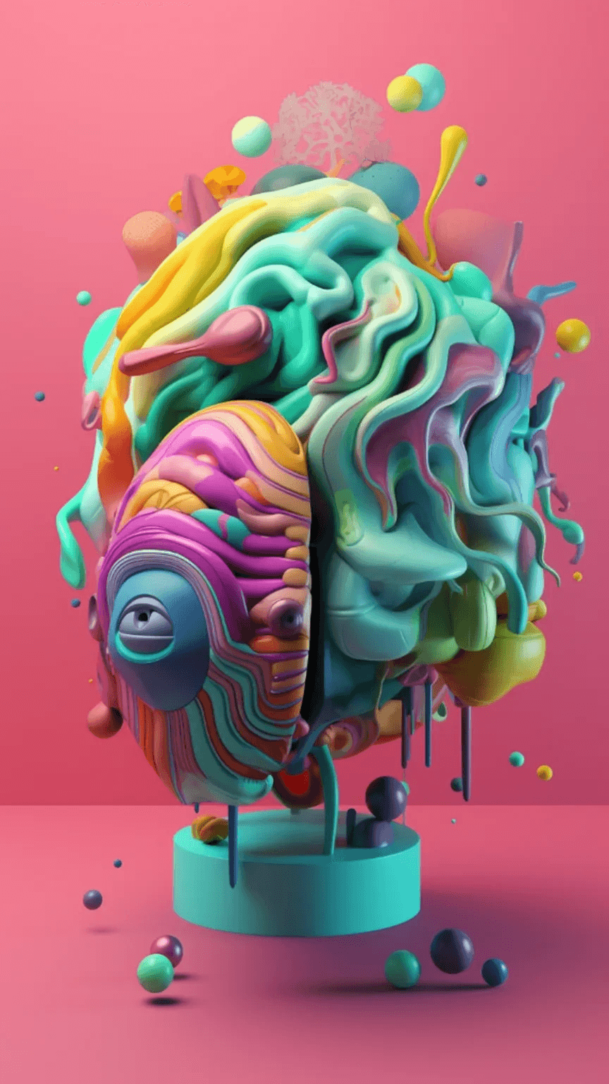 A 3D brain with eyes, trending color palette, UI, by Leo Natsume, 3D illustratio...